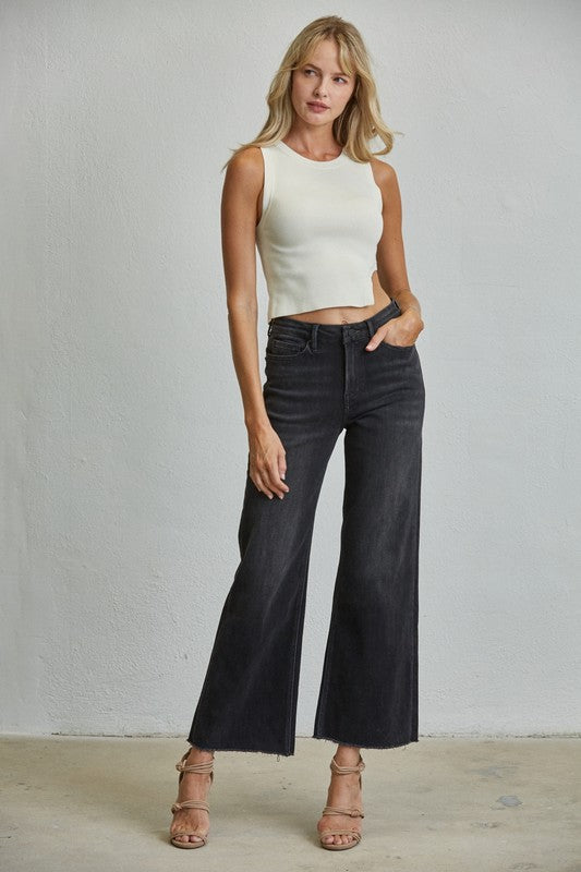 Black Mica Denim Stretch Super High Rise Wide Leg